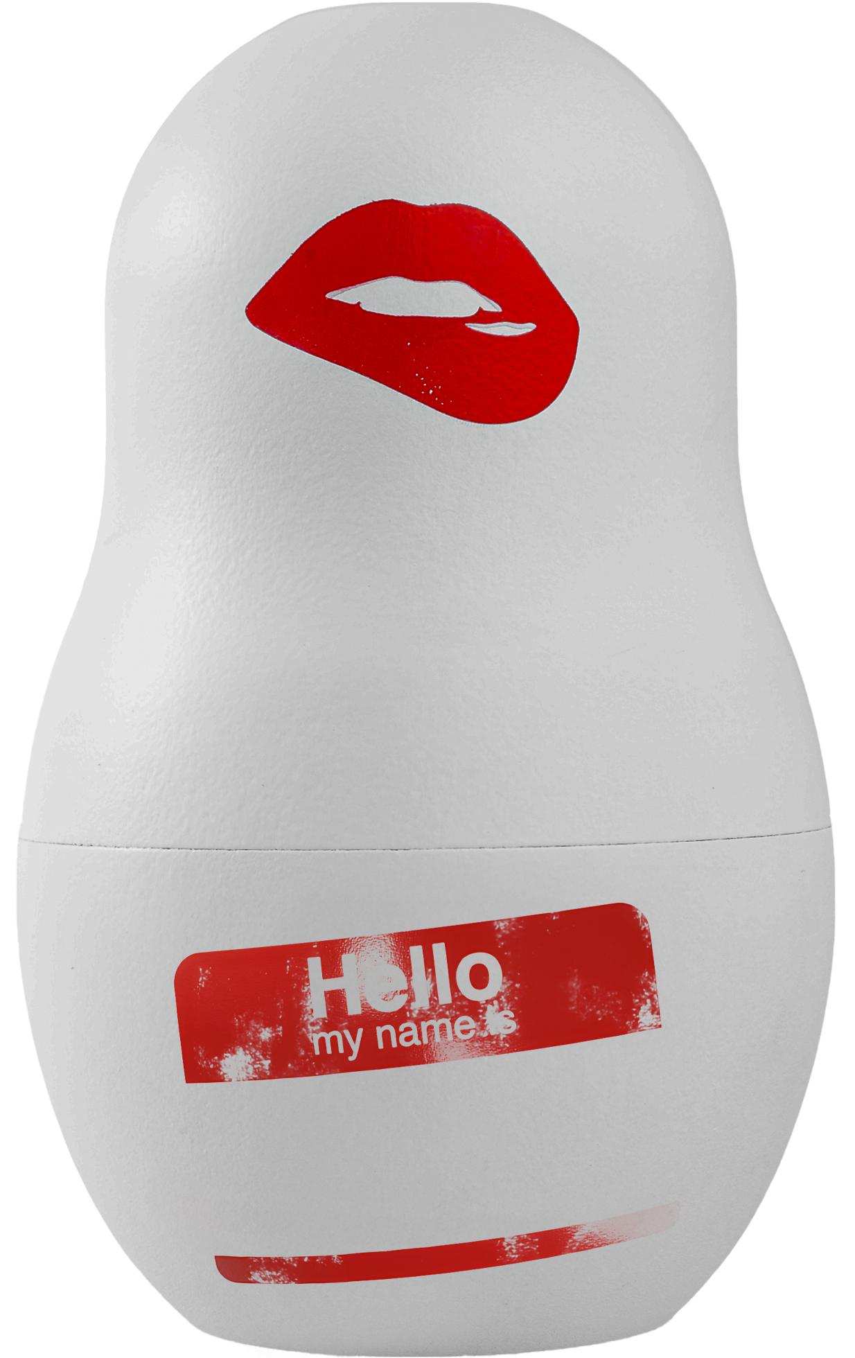 Помимо губ, мы добавили на неё стикер Hello my name is, вдохновившись старым кино. Люди знакомились на вечеринках и, чтобы упростить коммуникацию, клеили такие на грудь, подписывая свои имена. Эта девочка наша чарующая незнакомка.